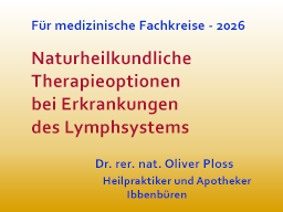 In dem Vortrag geht es um die Physiologie und Anatomie des Lymphgefäßsystems, sowie der Vorstellung ganzheitlicher Therapievorschläge bei Erkrankungen.